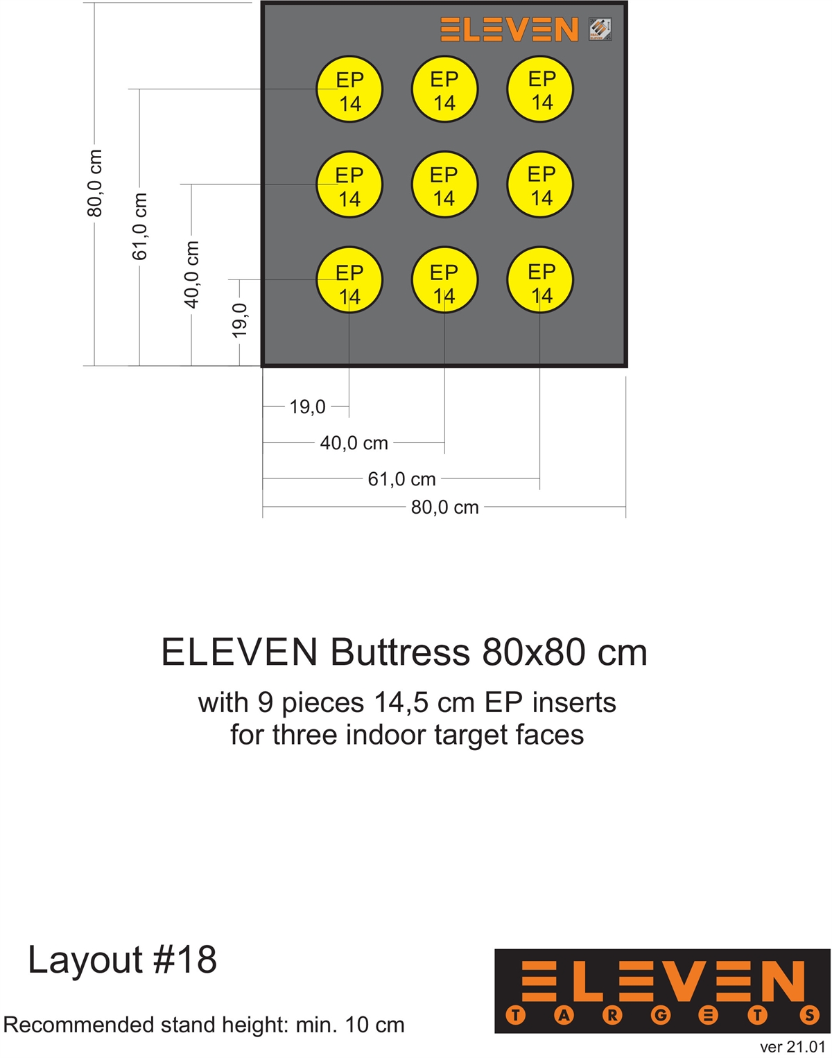 Eleven Target 25x80x80 Poly Target with 9/14.5cm EP insert