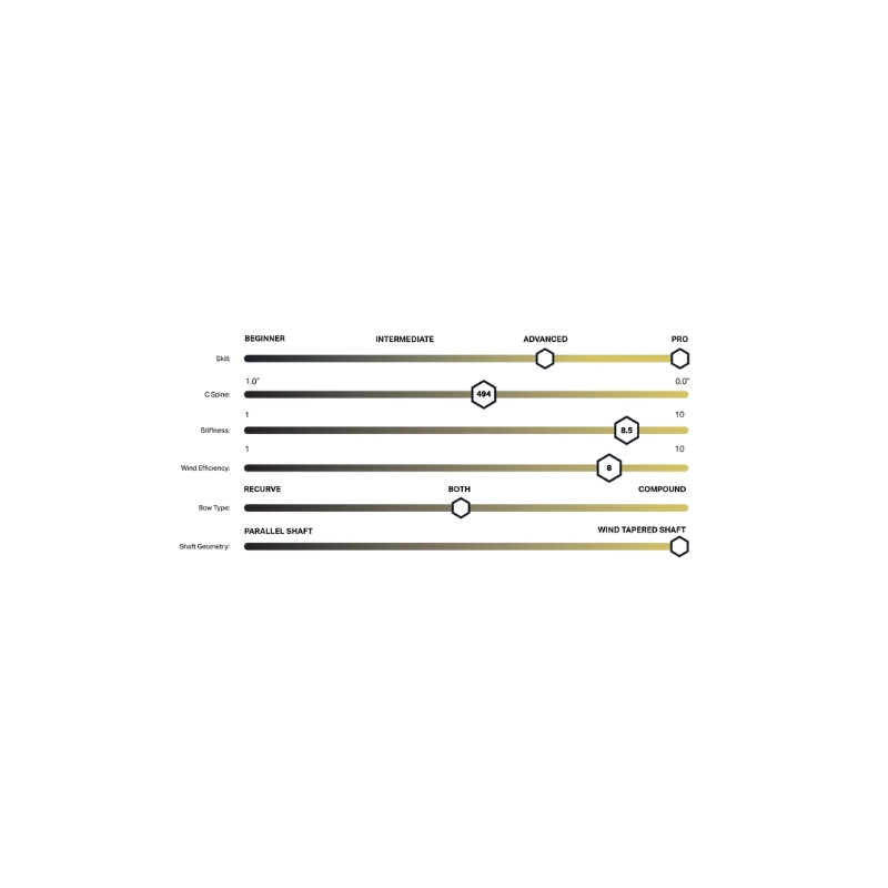 🎯 Kompatibilitet og anvendelse Vektor fungerer perfekt med både recurve og compound buer. Anbefalede vægtintervaller på frontstangen: